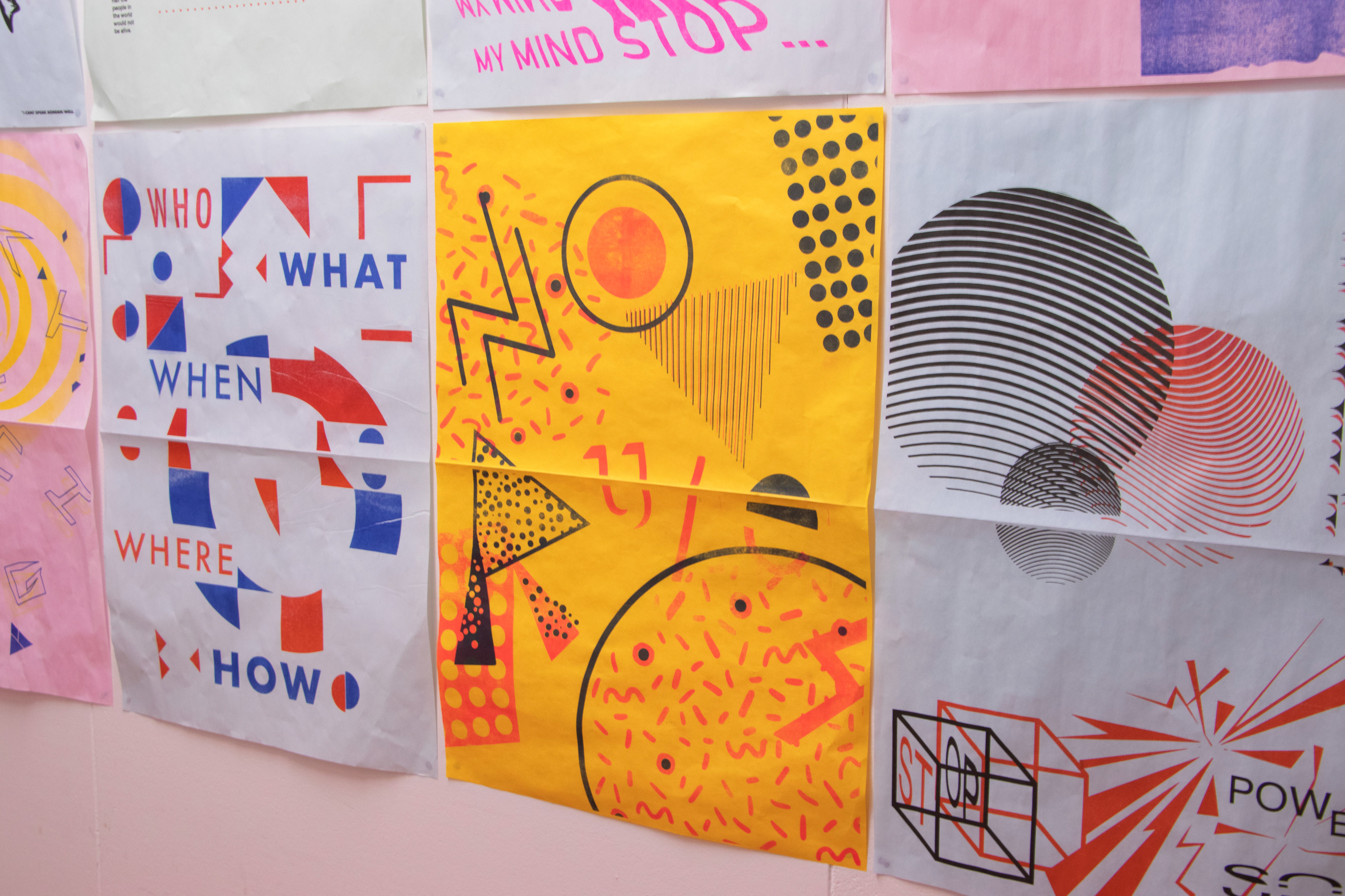 For my poster I was given the colour yellow for the paper and used pink and blue ink. My poster was inspired by designer, Kate Moross, as I was drawn to her bold, geometric style and I was inspired by a quote she said "For me, there are no rules when it comes to what's considered 'good' design." So I wanted to incorporate this into my own design and be playful with it.