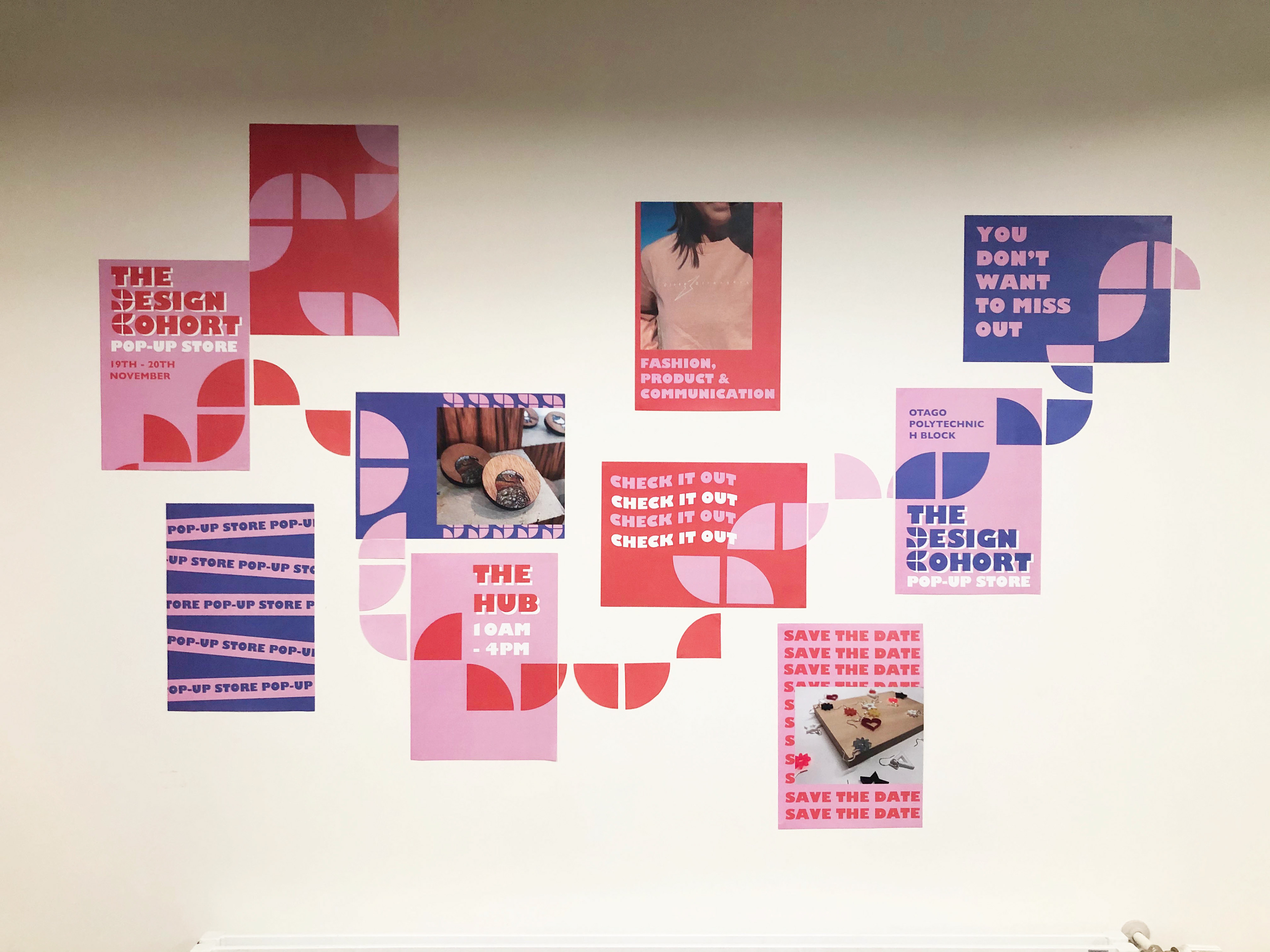 As part of the end of year Otago Polytechnic design exhibition 'Debrief', there was a pop-up store that also ran alongside it. I was part of a two person team that developed a branded identity for the store, where we came up with the name The Design Cohort and designed vendor posters, event posters, way-finding, stickers and swing tags for the store.